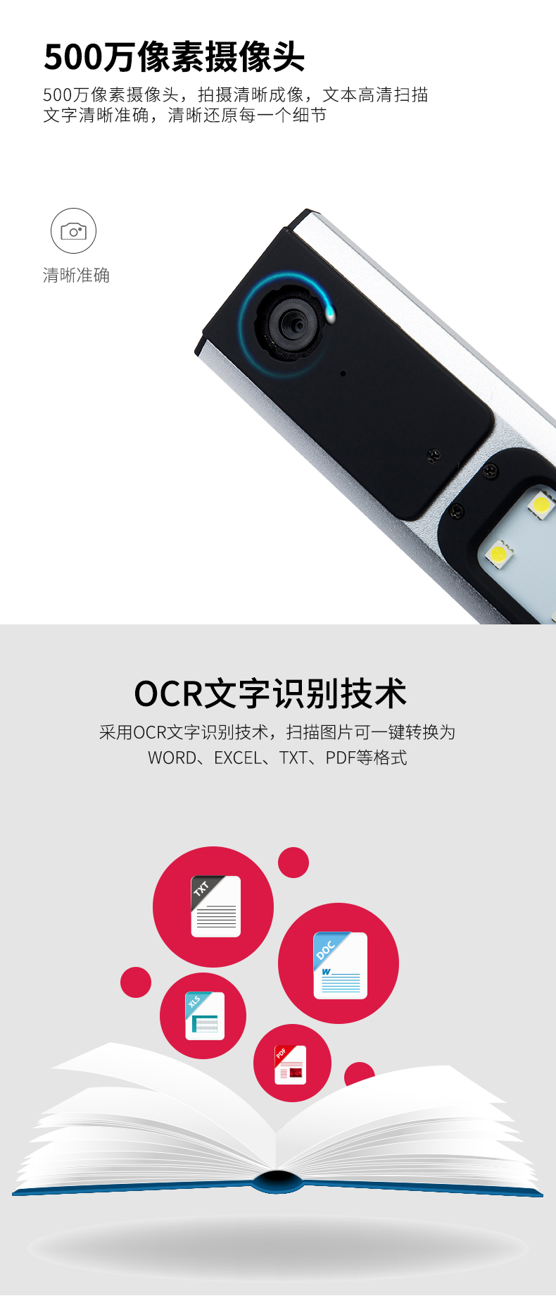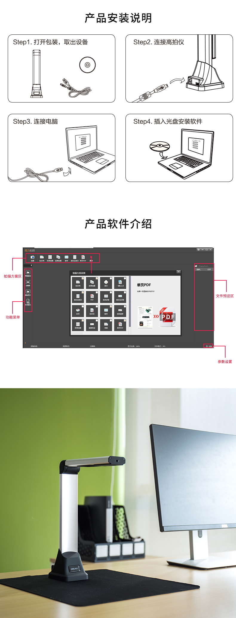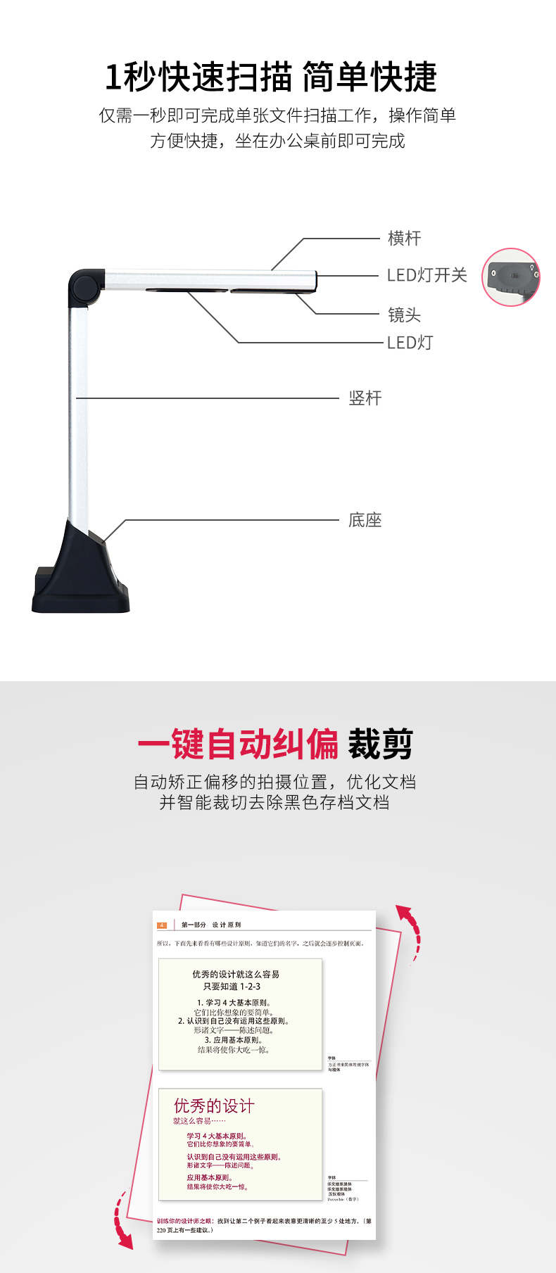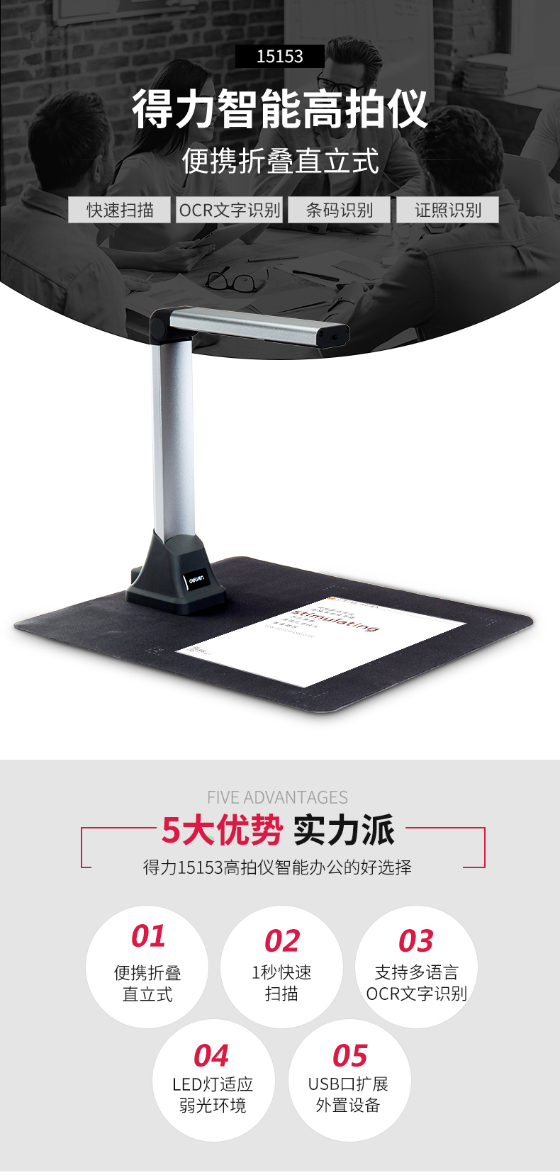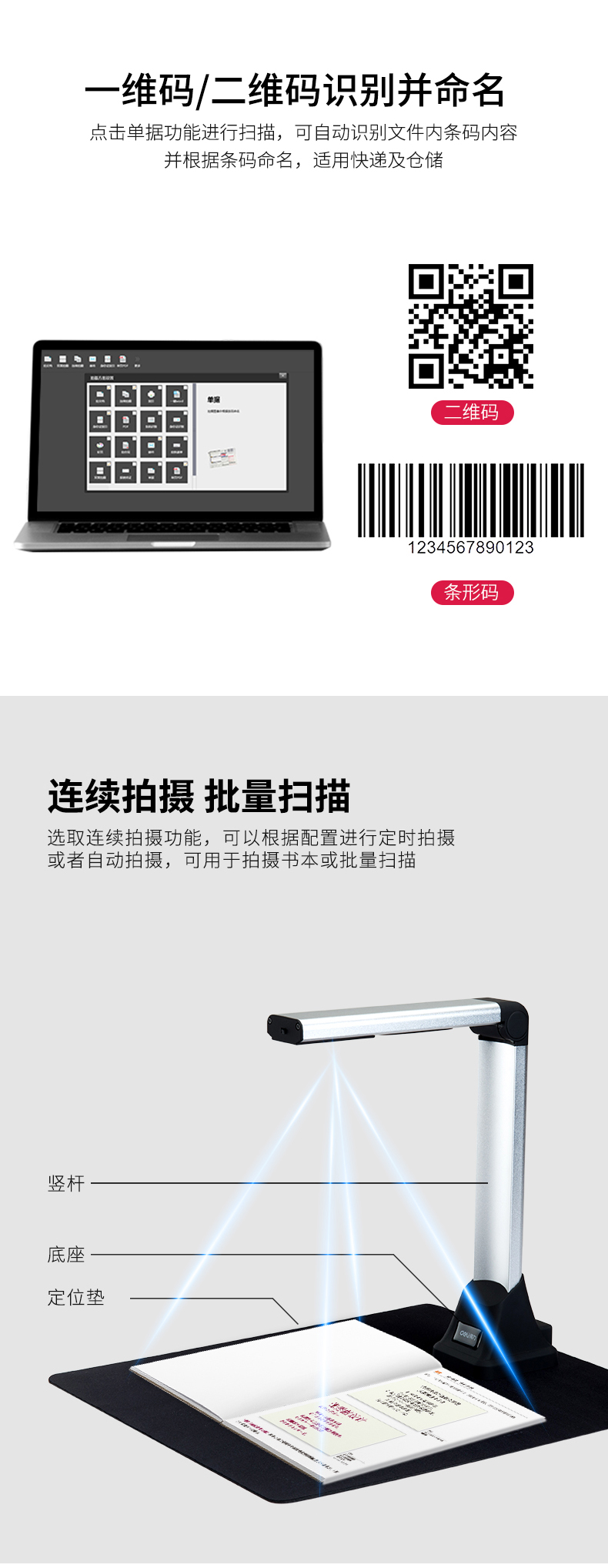 特性 | 1、支持文檔和整件快速掃描拍攝;2、多語言OCR文字識別功能;3、自動快速條碼識別 |