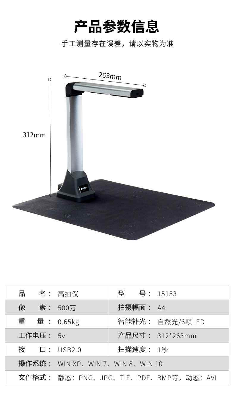掃描速度 | 1秒,支持實時預覽 |
