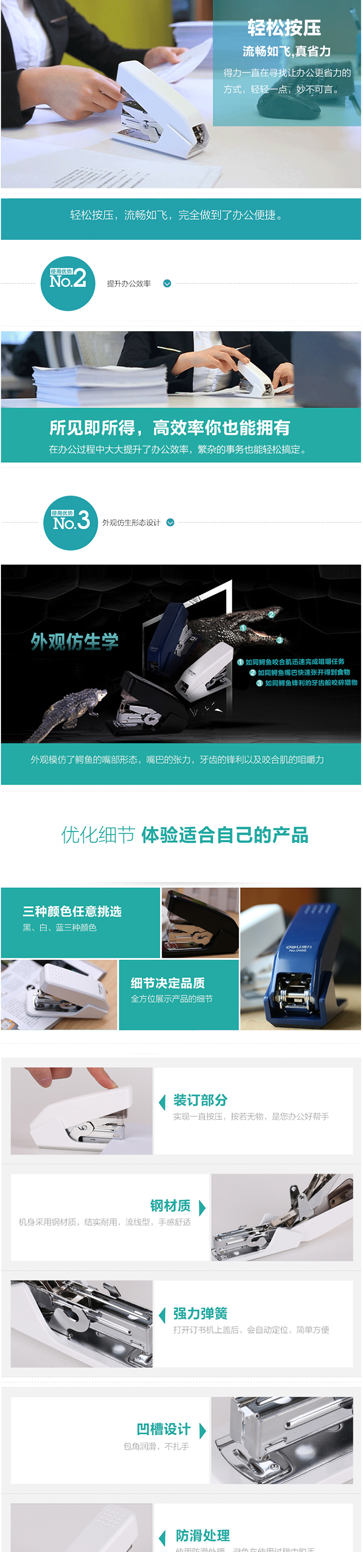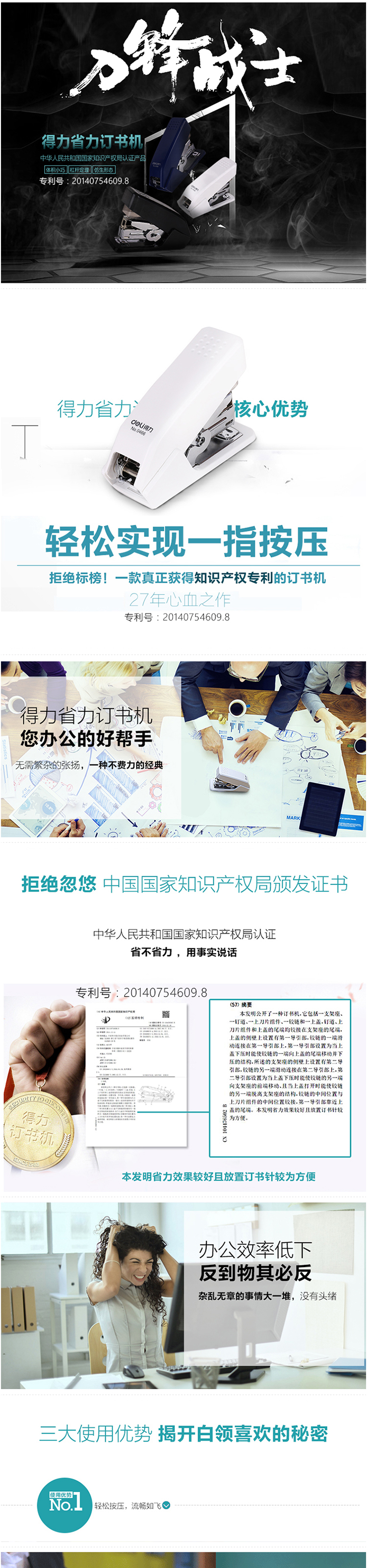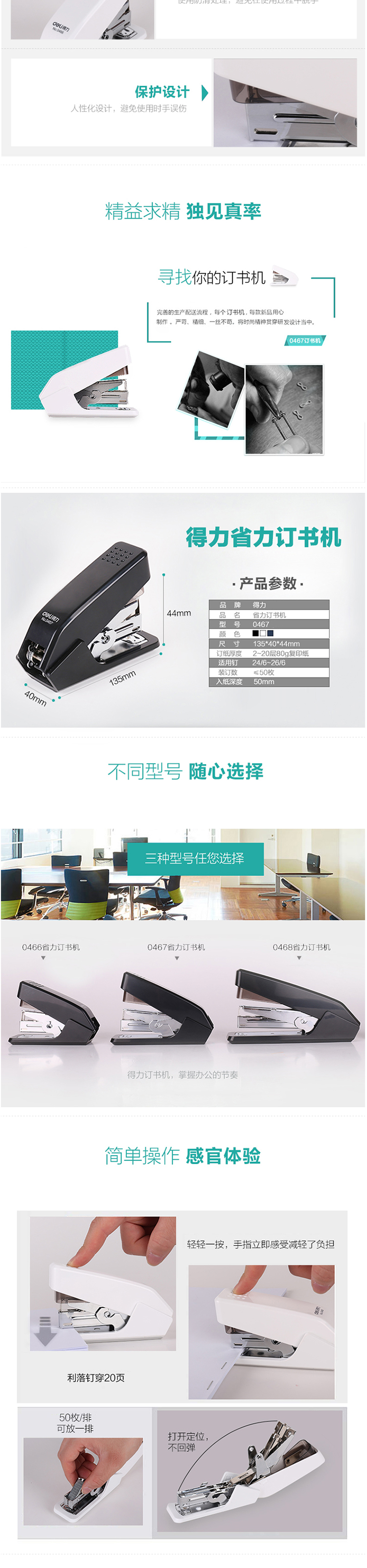 “deli/得力”No.0467 省力訂書機 單個裝(藍色結構專利訂書器適配12#訂書釘可裝100枚釘)