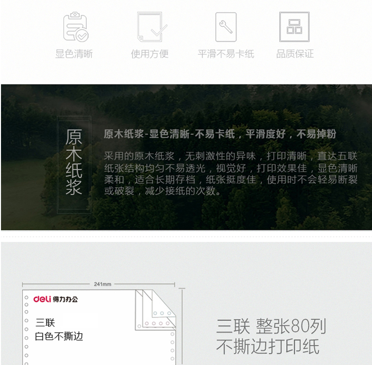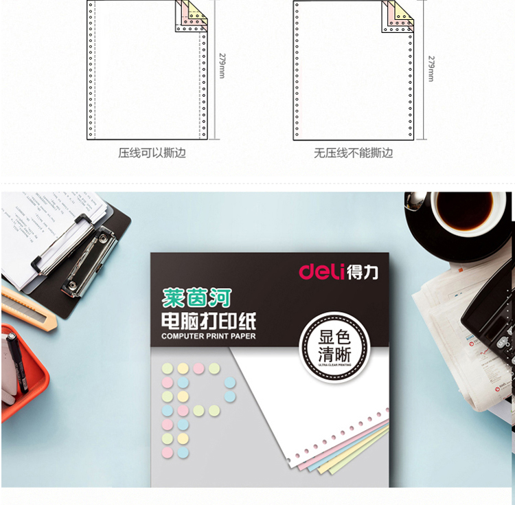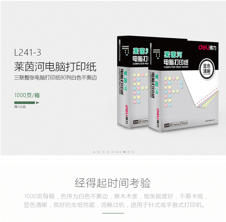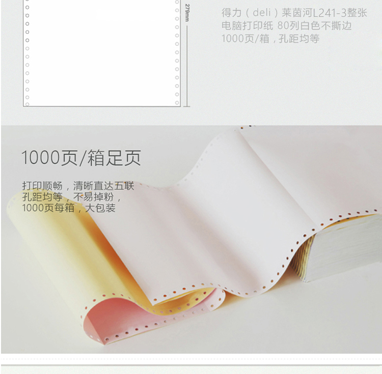 “deli/得力”L241-3 電腦打印紙 單箱裝(白色萊茵河三聯整張80列不撕邊1000頁/箱)
