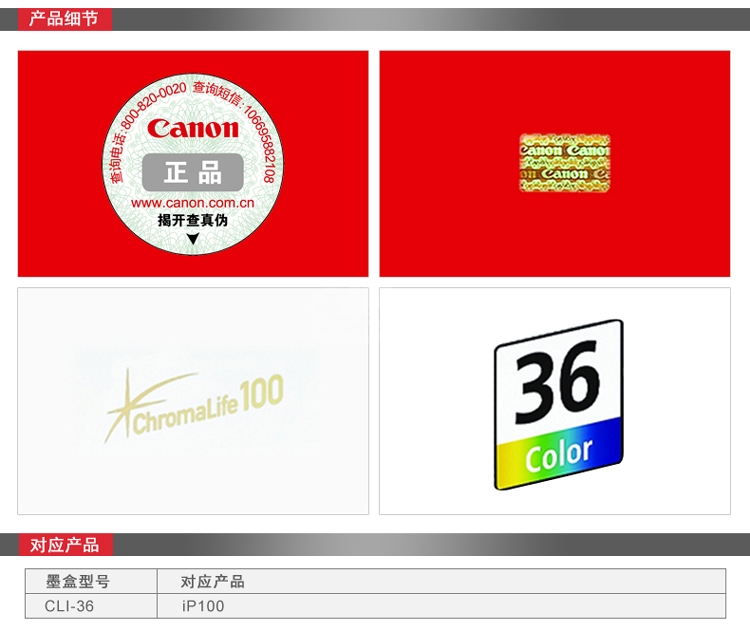 “Canon/佳能”CLI-36 墨盒 單個裝(彩色適用于PIXMA iP100 TR150)