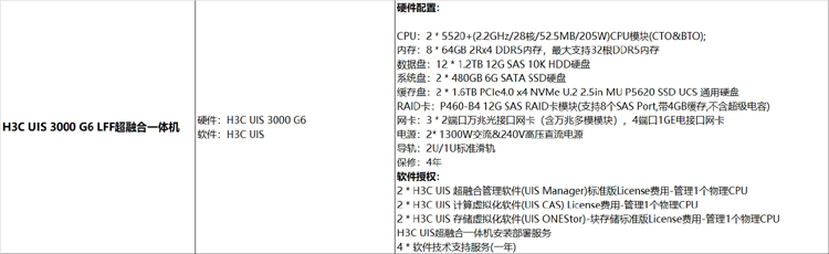 “H3C”UIS 3000 G6 LFF超融合一體機 1臺裝(硬件:H3C UIS 3000 G6軟件:H3C UIS)