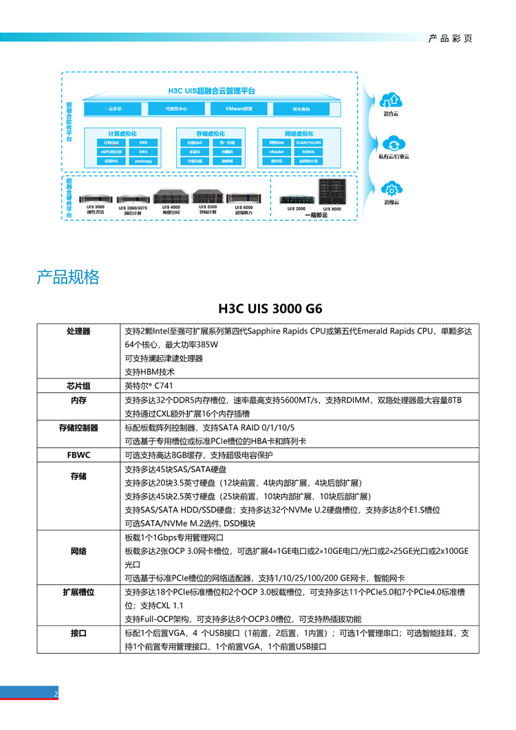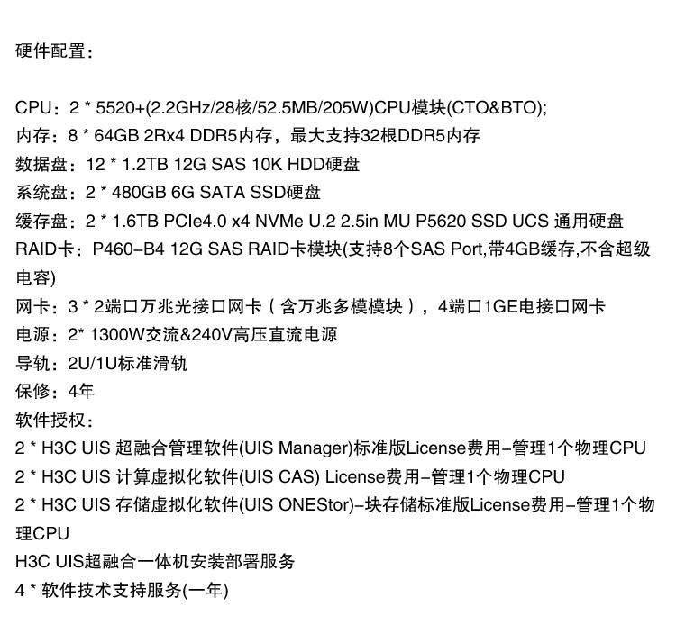 品牌:H3C/華三型號:UIS 3000 G6產地:浙江省杭州市