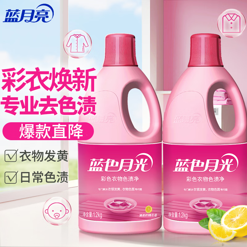 “藍月亮”1.2kg*2 色漬凈 單組裝(藍色月光彩色衣物色漬凈彩漂液彩衣去漬增艷增新去黃2瓶/組)